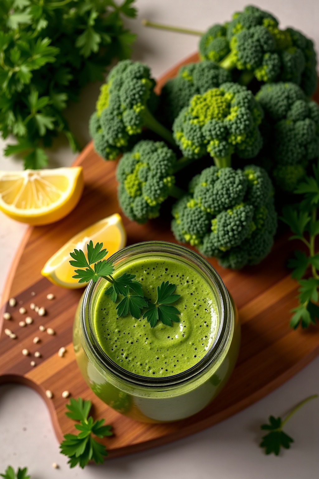 Sofort trinken, um den maximalen Gehalt an Antioxidantien und Chlorophyll zu erhalten.