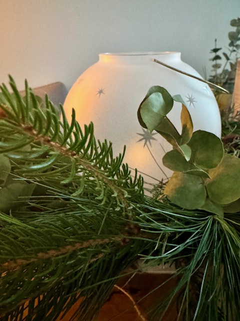 Jetzt- in dieser Jul-Tied- habe ich mir die Frage gestellt, ob es immer nur das GRÜN der traditionellen Tanne oder auch das GRÜN des Eukalyptus sein darf- ich habe mich zu Hause für beides entschieden- denn manchmal darf es gerne BEIDES sein.
