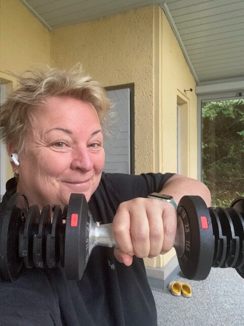 Übrigens: Du benötigst nicht unbedingt das Sport-Equitment; nutze 1,5 kg-Wasserflaschen; einen Kartoffelbeutel oder andere Haushaltgegenstände mit Gewicht, die sich gut für die Übungen händeln lassen 🙂