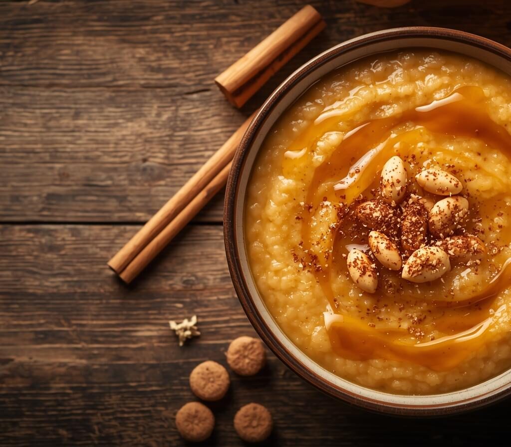 Das Kürbis-Hirse-Porridge stärkt die Mitte, fördert sanft die Transformation von Feuchtigkeit und bringt innere Stabilität und Wärme – eine harmonische Mahlzeit für Körper und Geist.