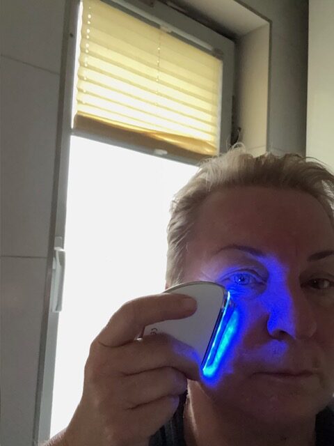 Dazu nutze ich zu Hause allerdings keine typischen Jade-Werkzeuge, sondern ein Gerät, welches zusätzlich mit Kälte/Wärme, Vibration und EMS arbeitet- diese sind mittlerweile sehr handlich(siehe Foto) und in einer guten Qualität zu erwerben.